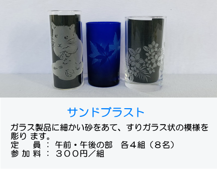 厚みのあるガラス製品(表面に凹凸のないコップやお皿)を1人あたり2個ご持参ください。