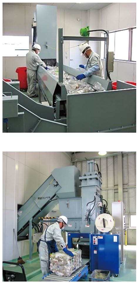 また、近年増加が著しいペットボトルの中間処理施設を新たに建設し、平成23 年4月から供用開始しています。これにより、ストックヤード施設で処理対象として いるその他プラスチック類ごみに加え、ペットボトルも効率的に処理できるように なりました。