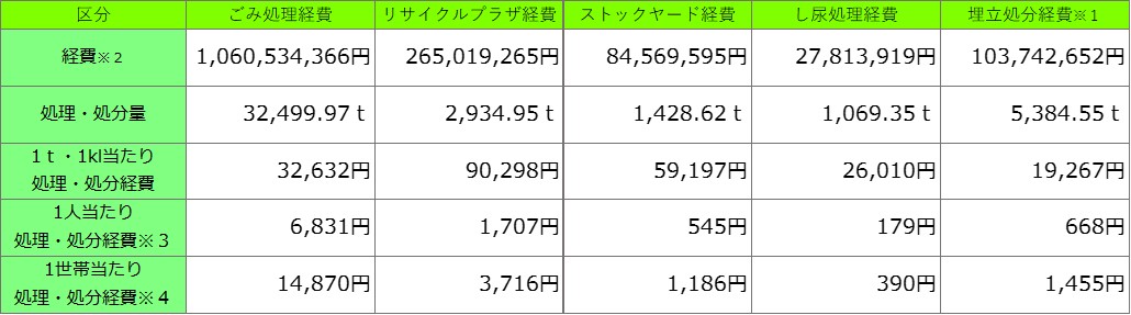 ※2 処理・処分経費には、収集・運搬にかかる経費は含んでいません。