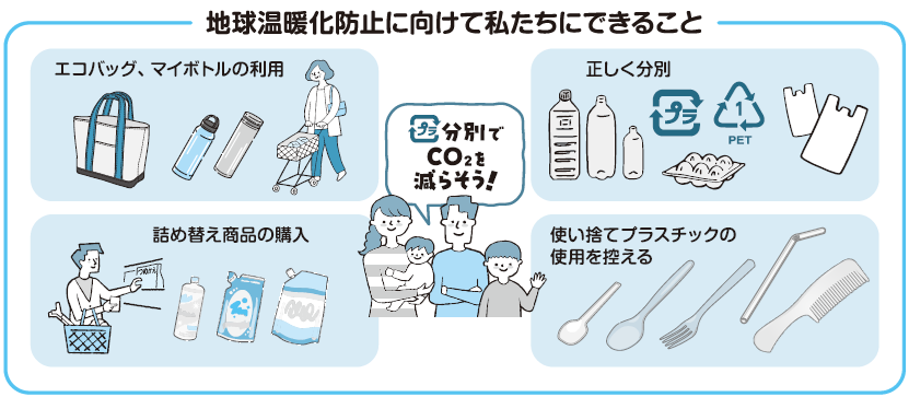 温室効果ガスの排出量を少しでも減らすためには、特に可燃ごみに混入している廃プラスチックを減らさなければなりません。